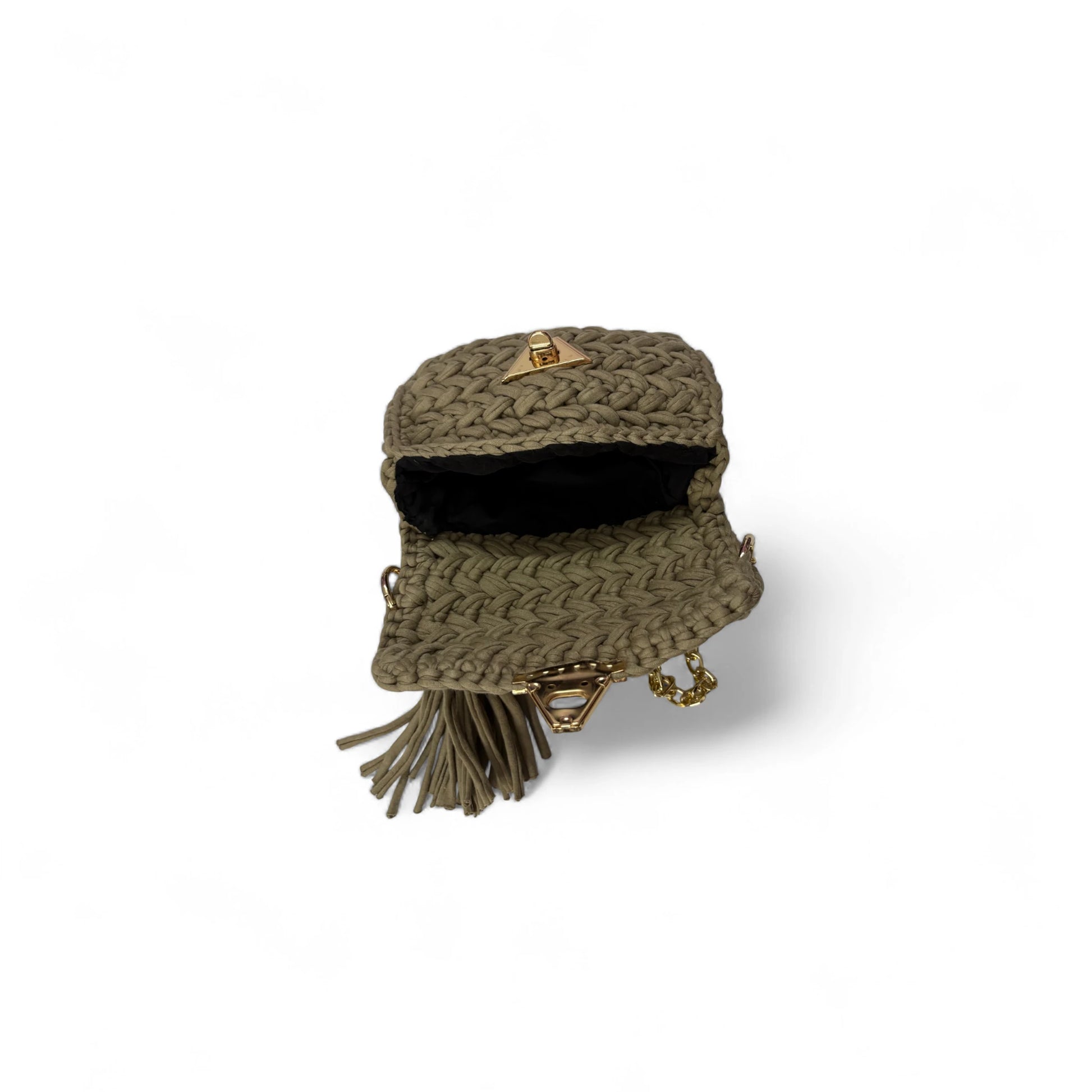 A handcrafted crochet bag made with 100% cotton t-shirt yarn that blends elegance with versatility.
