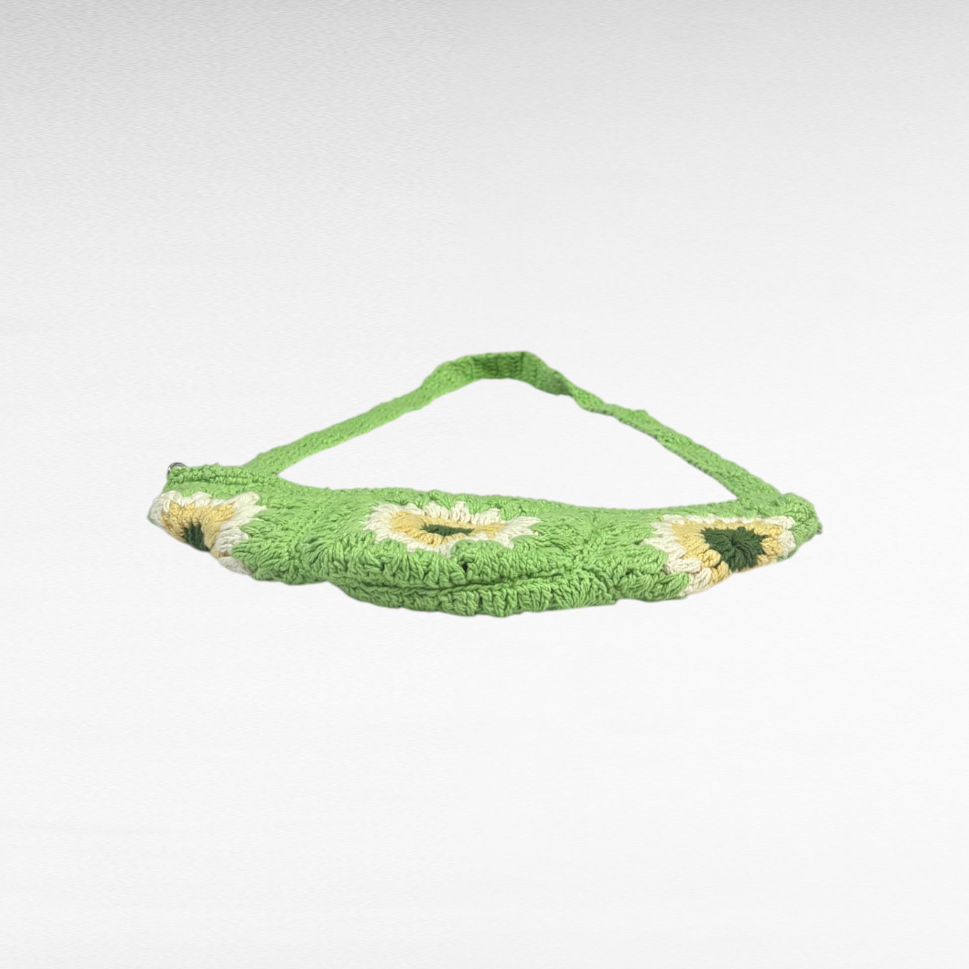 This crossbody bag is expertly handcrafted using cotton yarn through crochet techniques. Its lightweight construction makes it an ideal choice for everyday use.