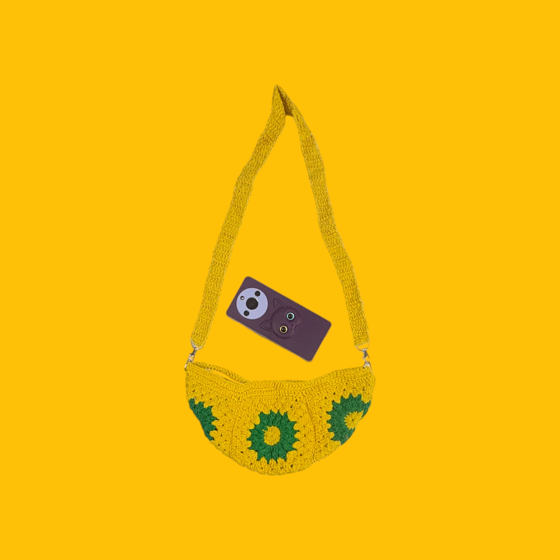 This crossbody bag is expertly handcrafted using cotton yarn through crochet techniques. Its lightweight construction makes it an ideal choice for everyday use.