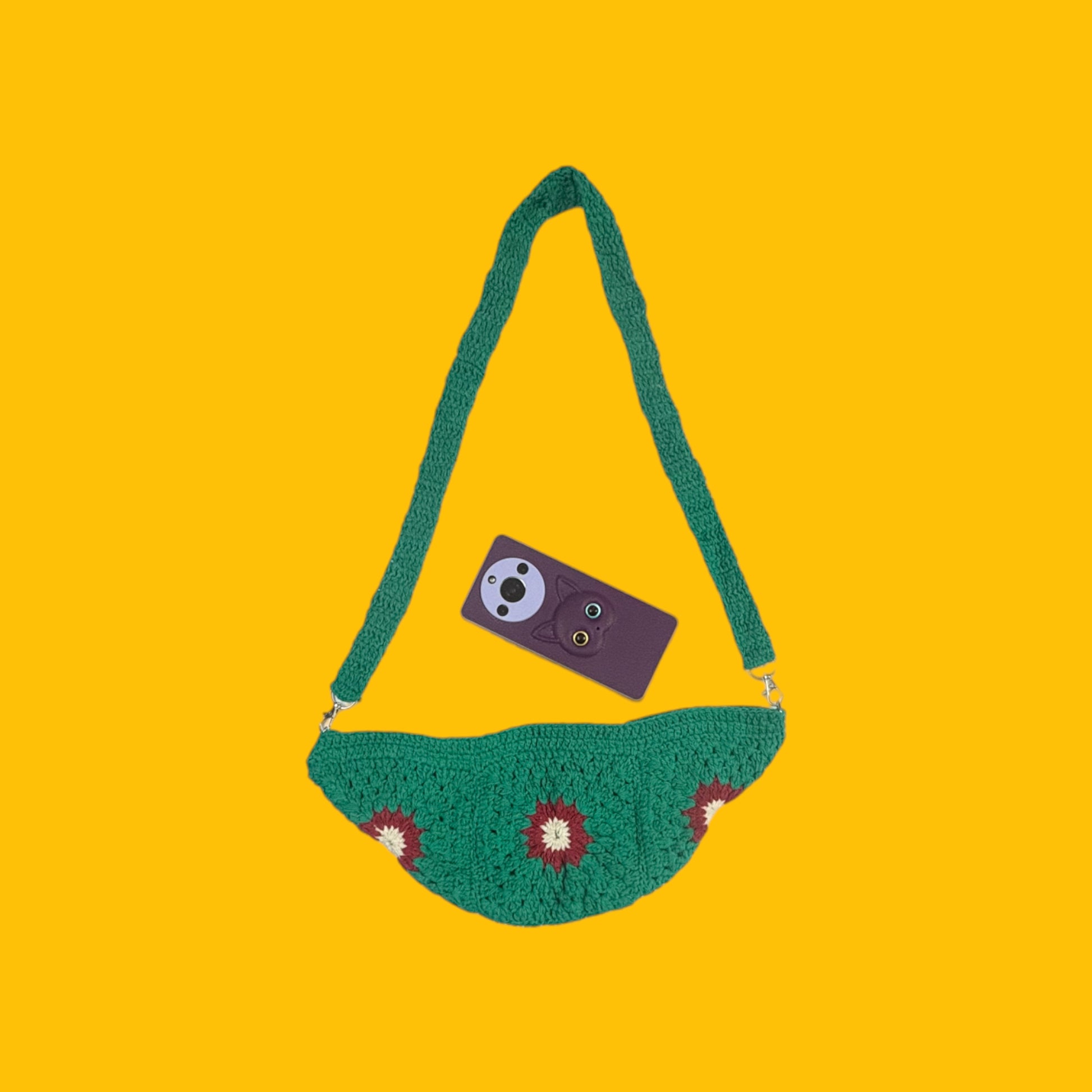 This crossbody bag is expertly handcrafted using cotton yarn through crochet techniques. Its lightweight construction makes it an ideal choice for everyday use.