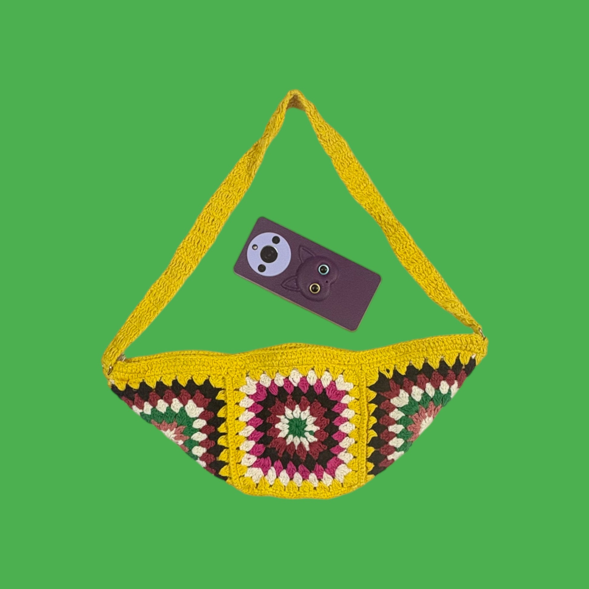 This crossbody bag is expertly handcrafted using cotton yarn through crochet techniques. Its lightweight construction makes it an ideal choice for everyday use.