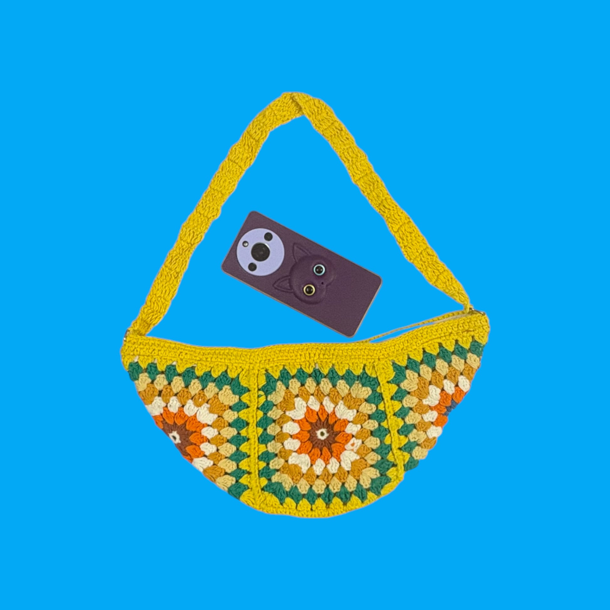 This crossbody bag is expertly handcrafted using cotton yarn through crochet techniques. Its lightweight construction makes it an ideal choice for everyday use.