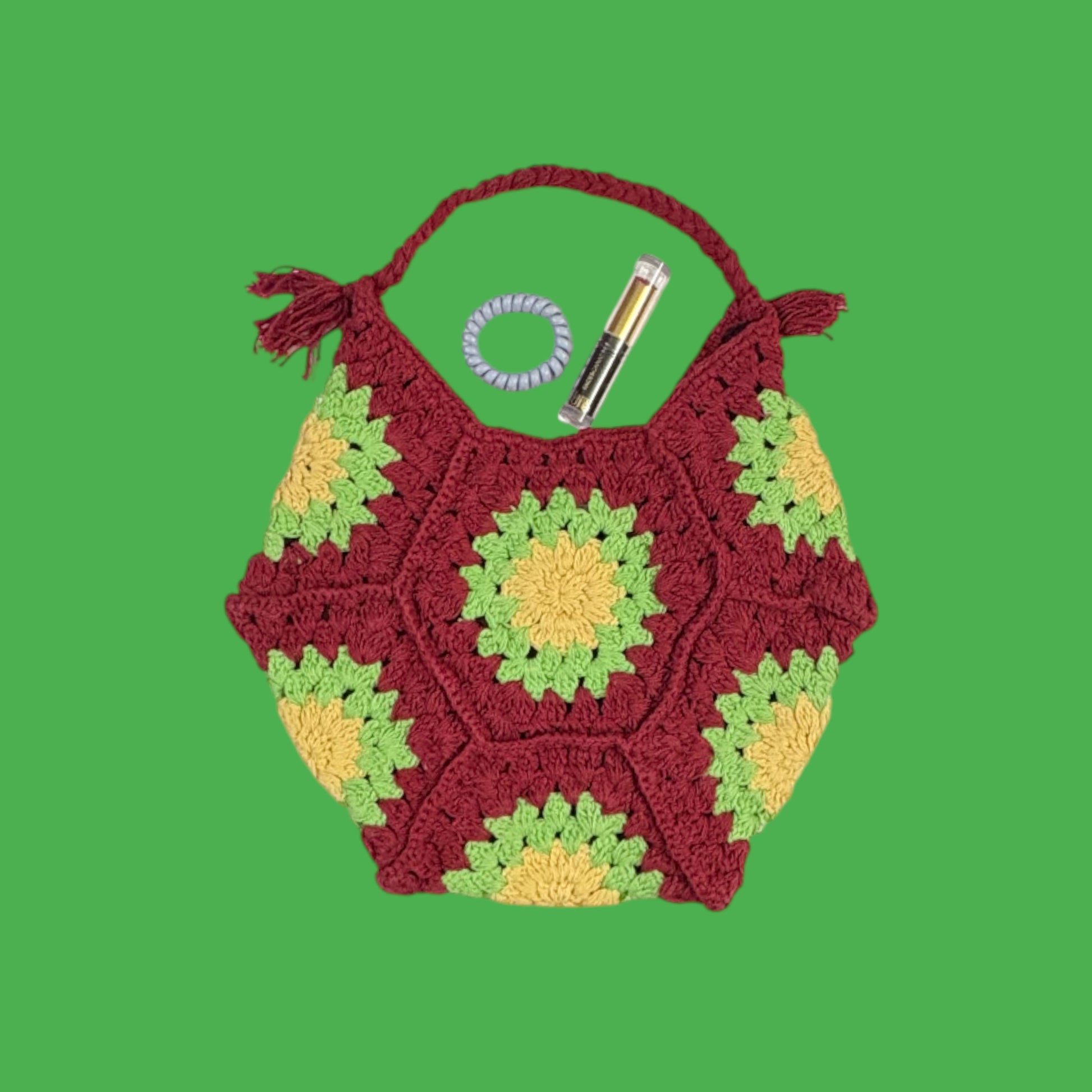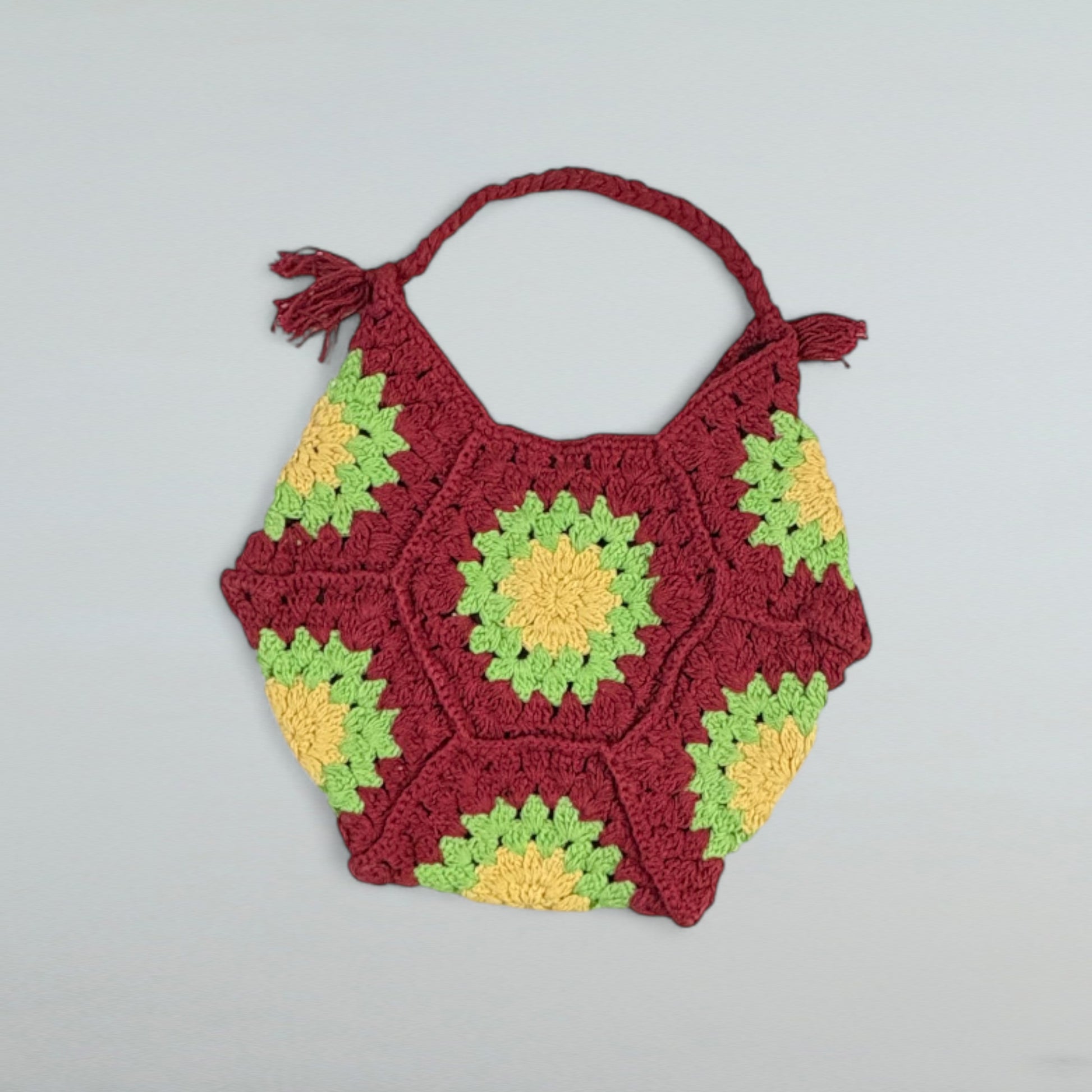 This handheld bag is expertly handcrafted using cotton yarn through crochet techniques. Its lightweight construction makes it an ideal choice for everyday use.