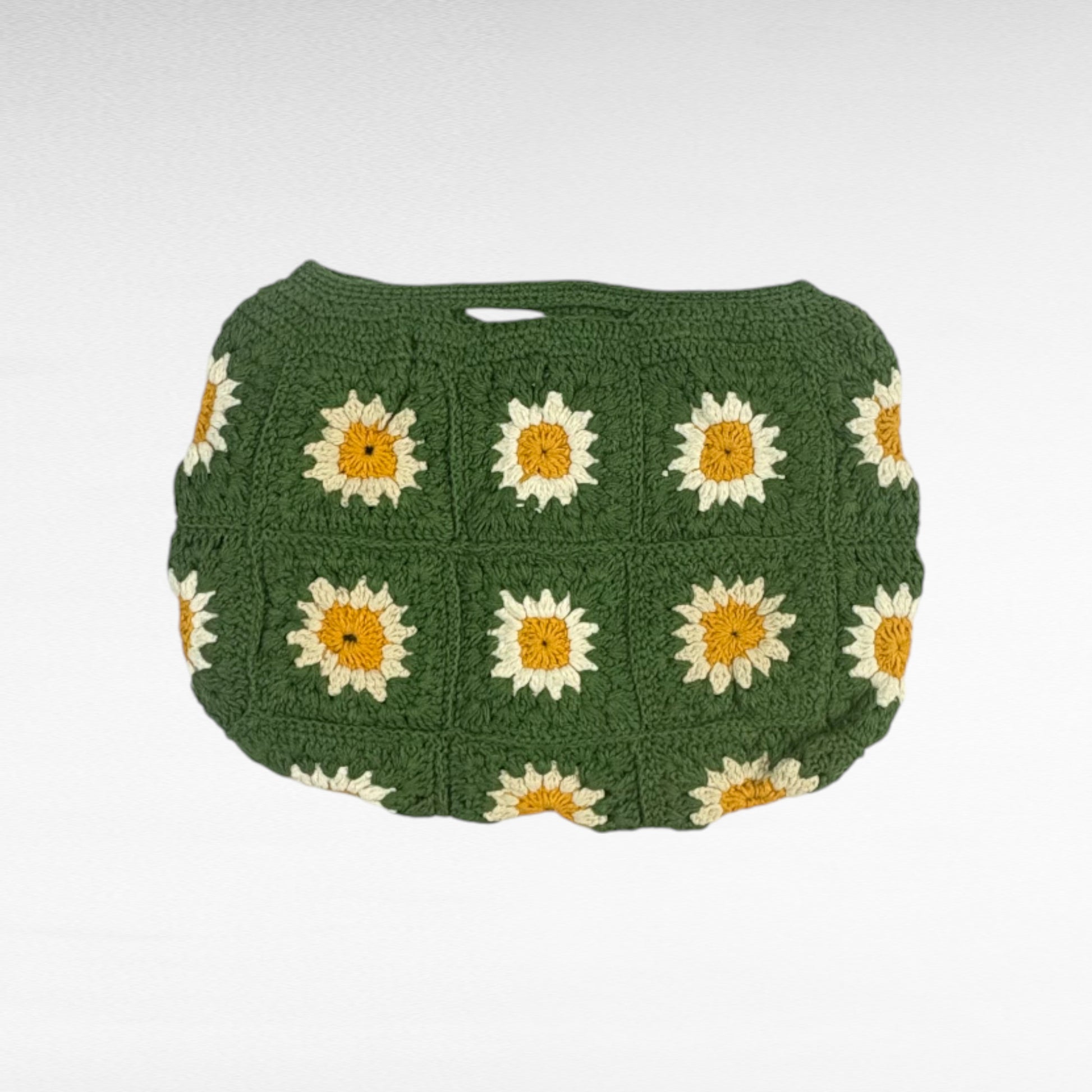 This handheld bag is expertly handcrafted using cotton yarn through crochet techniques. Its lightweight construction makes it an ideal choice for everyday use.