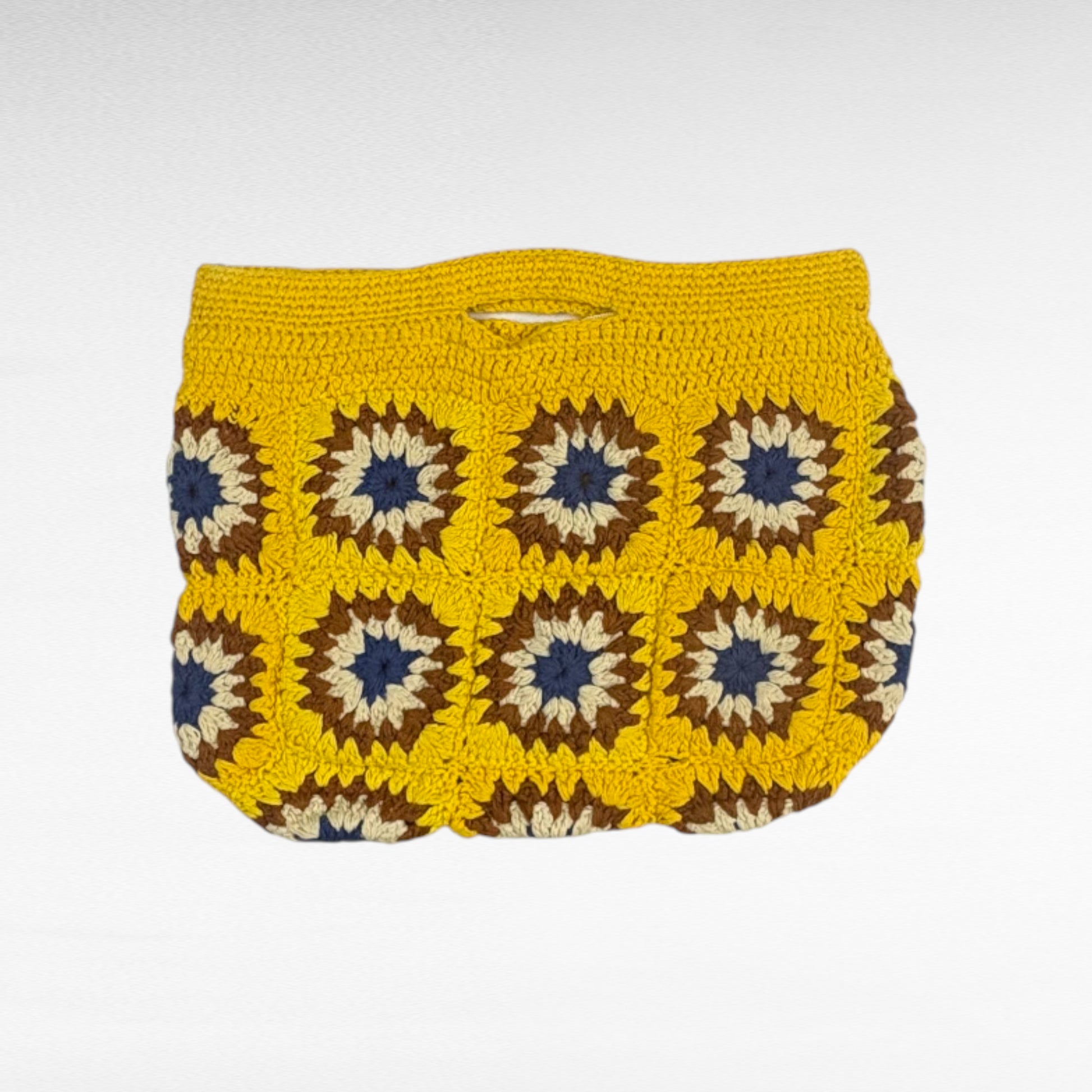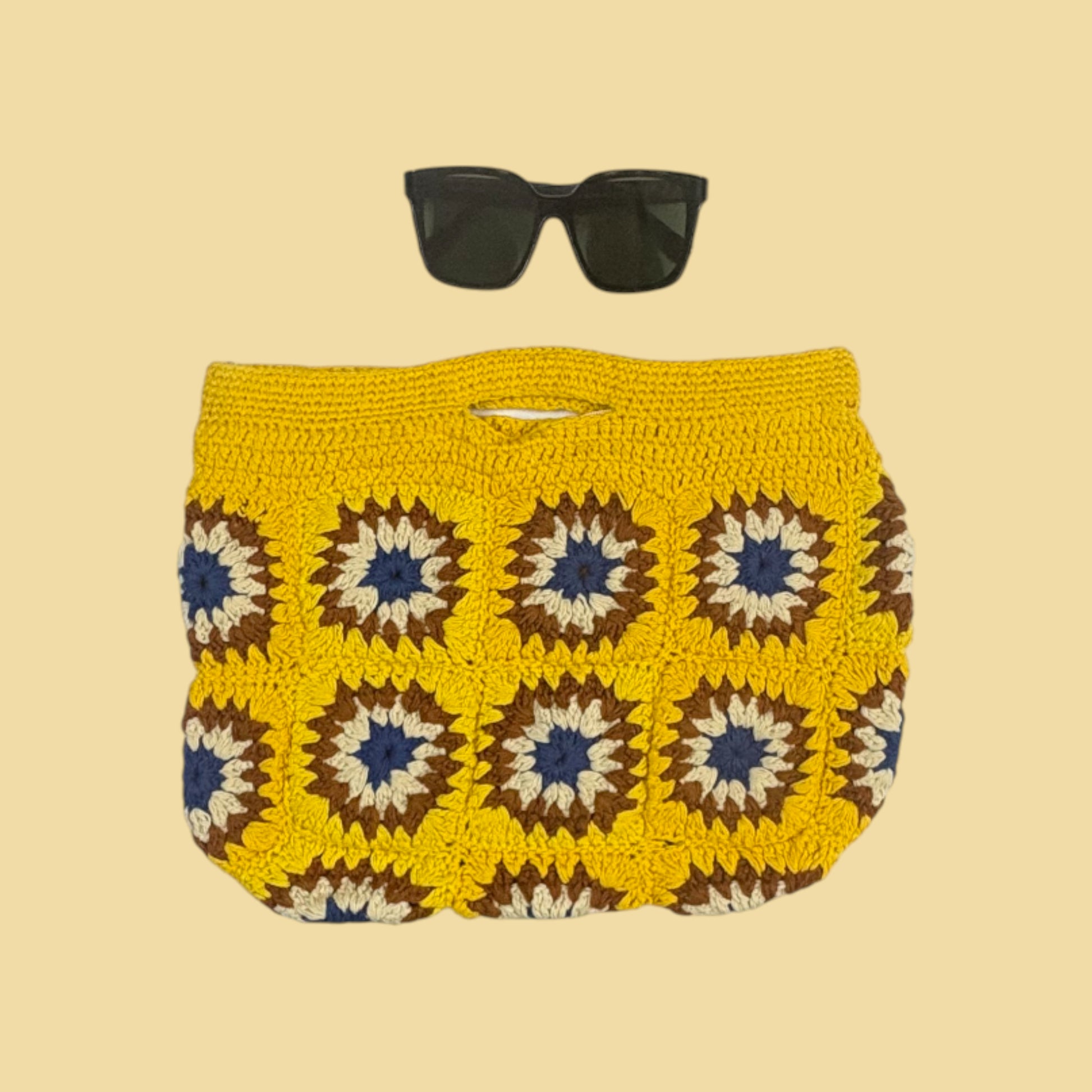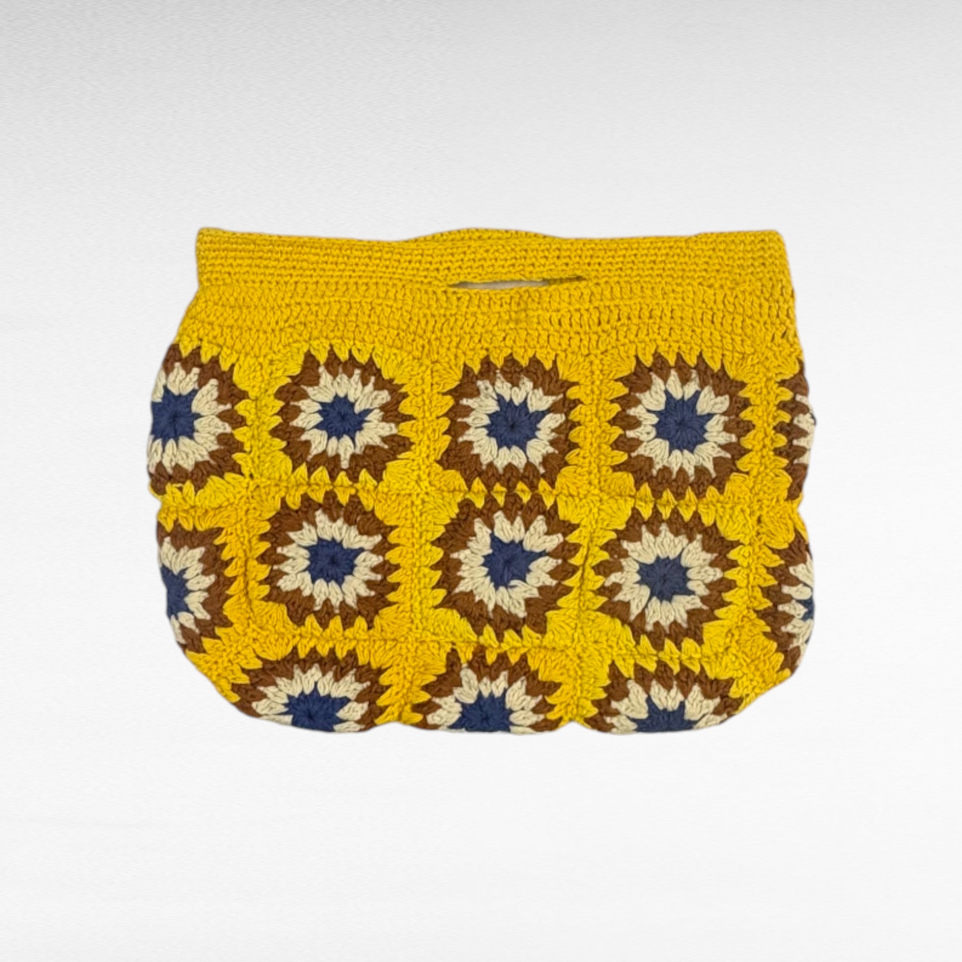 This handheld bag is expertly handcrafted using cotton yarn through crochet techniques. Its lightweight construction makes it an ideal choice for everyday use.