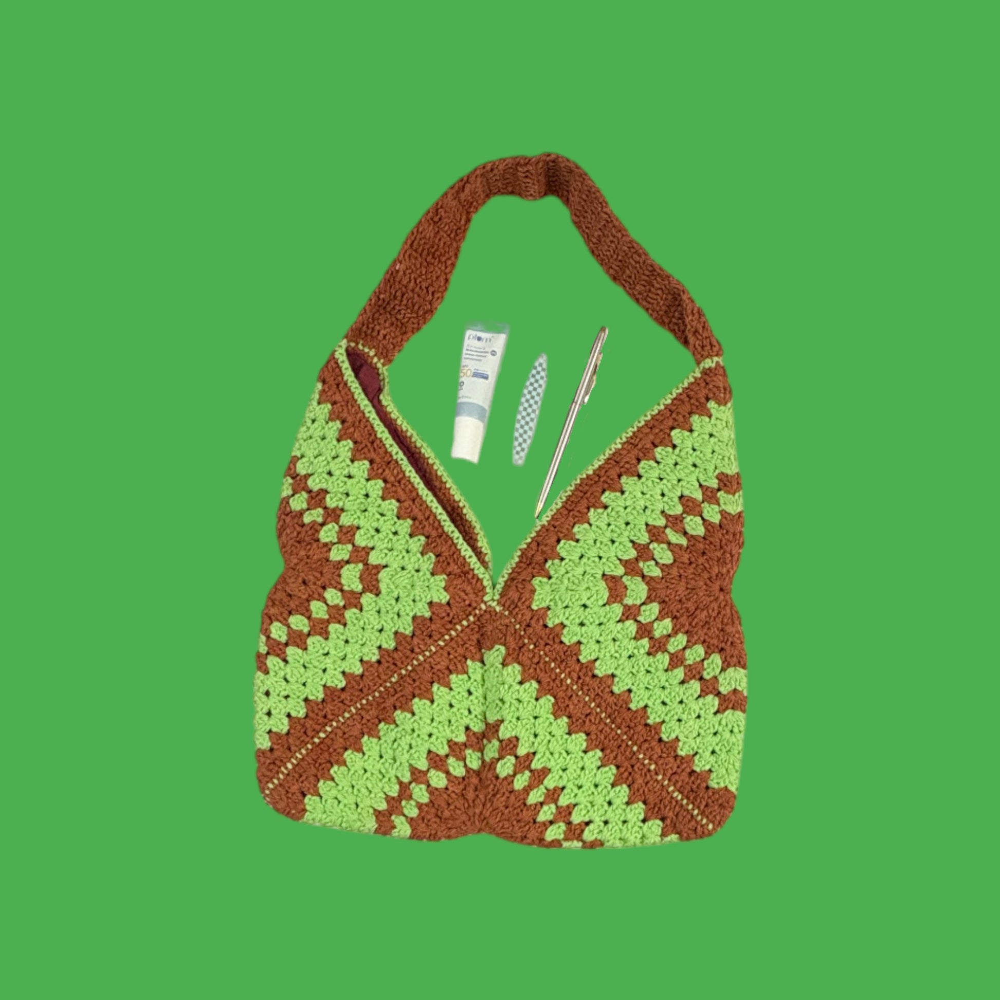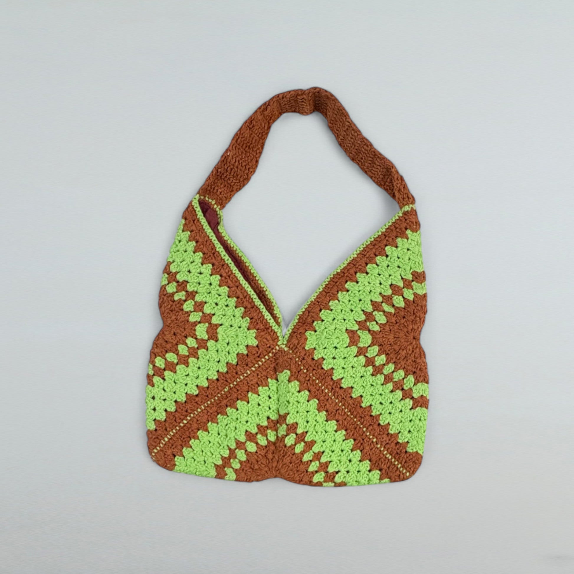 This shoulder bag is expertly handcrafted using cotton yarn through crochet techniques. Its lightweight construction makes it an ideal choice for everyday use.