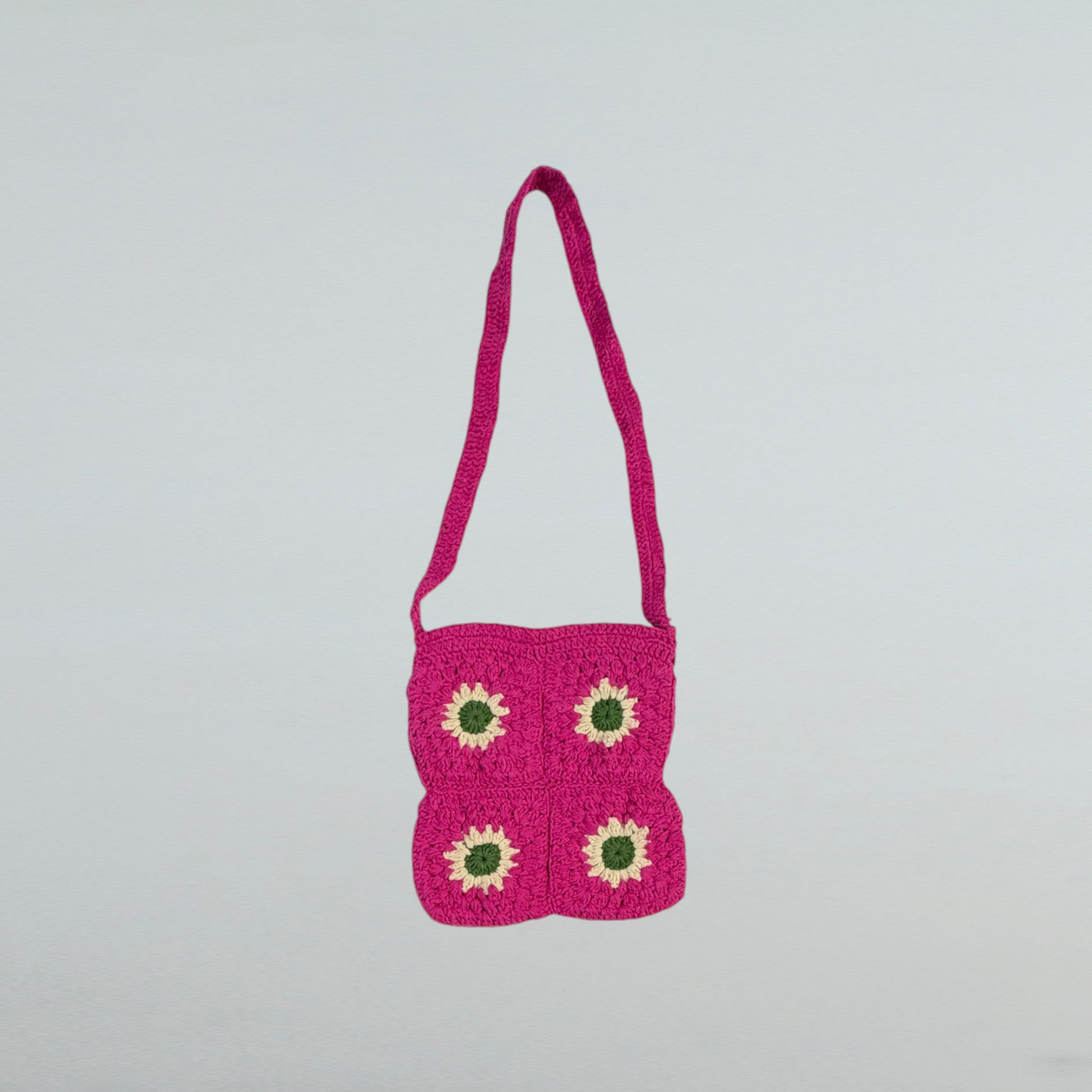This sling bag is expertly handcrafted using cotton yarn through crochet techniques. Its lightweight construction makes it an ideal choice for everyday use.
