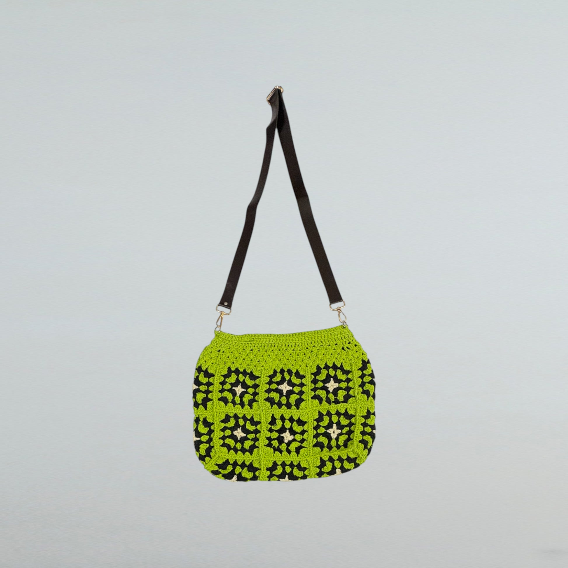 This shoulder bag is expertly handcrafted using cotton yarn through crochet techniques. Its lightweight construction makes it an ideal choice for everyday use.