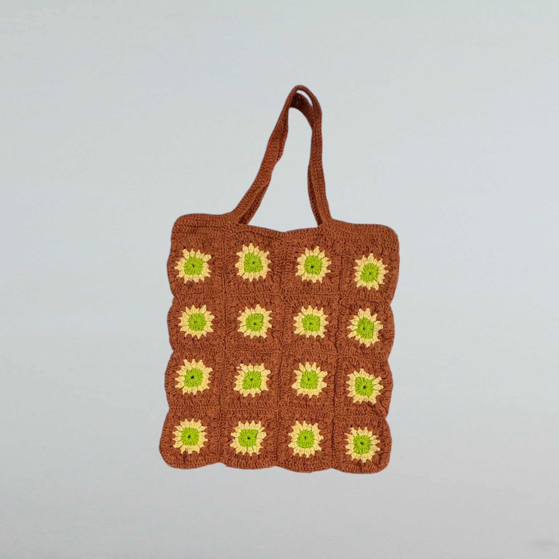 This shoulder bag is expertly handcrafted using cotton yarn through crochet techniques. Its lightweight construction makes it an ideal choice for everyday use.