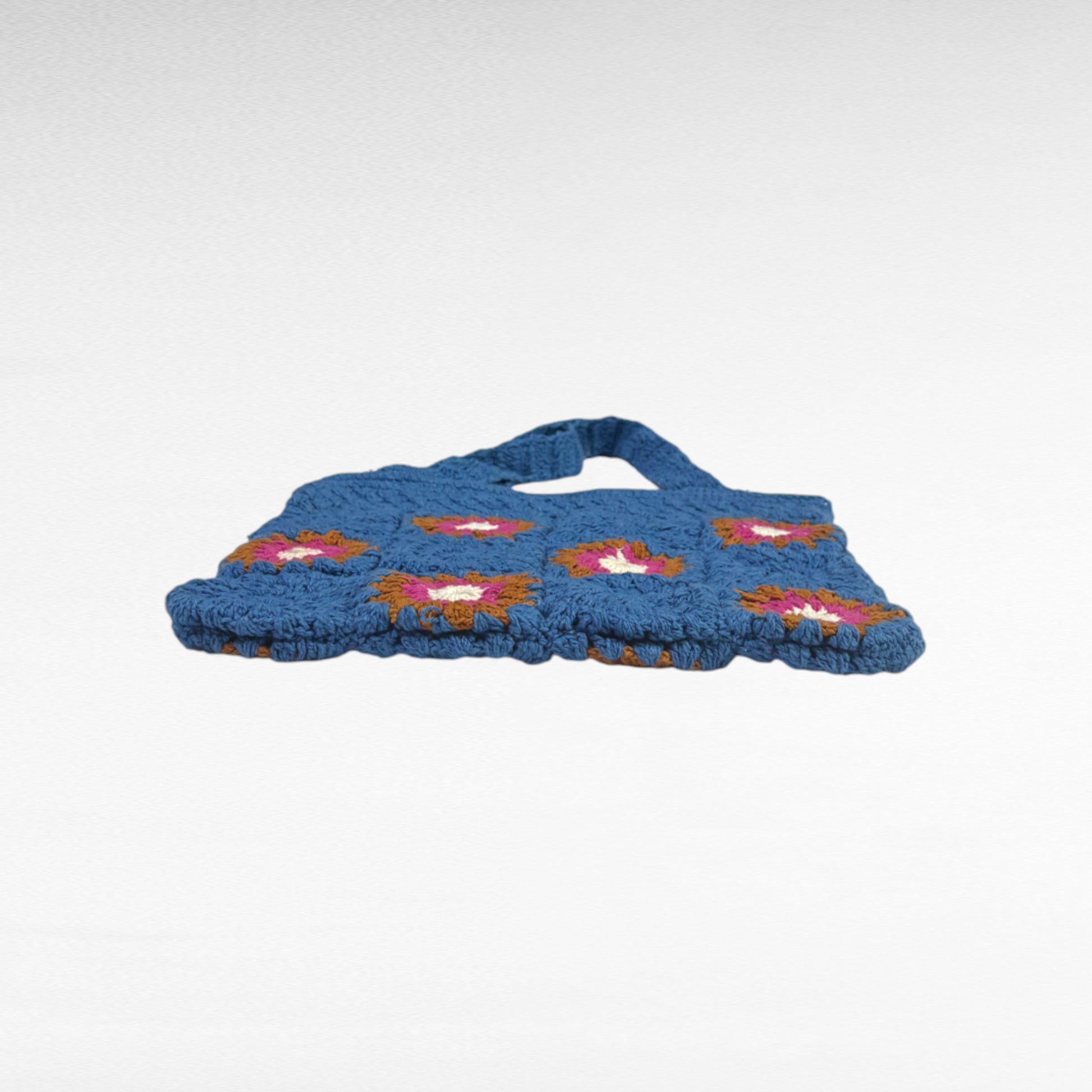 This shoulder bag is expertly handcrafted using cotton yarn through crochet techniques. Its lightweight construction makes it an ideal choice for everyday use.