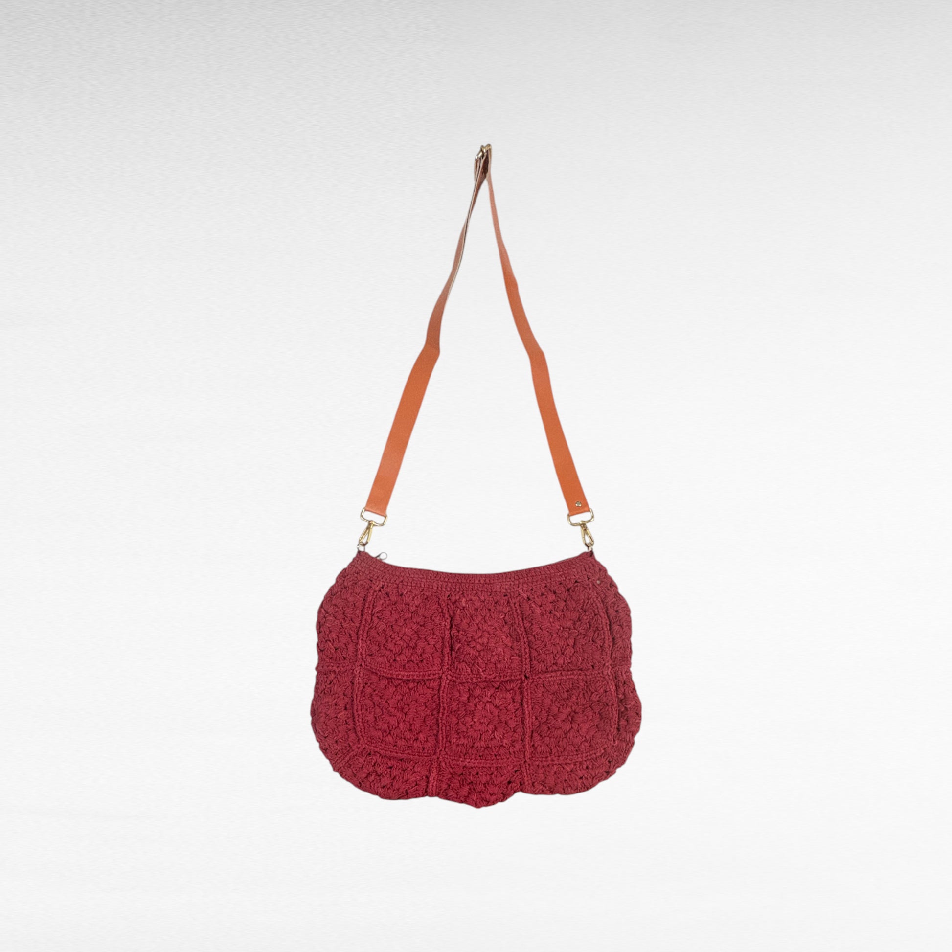 This shoulder bag is expertly handcrafted using cotton yarn through crochet techniques. Its lightweight construction makes it an ideal choice for everyday use.