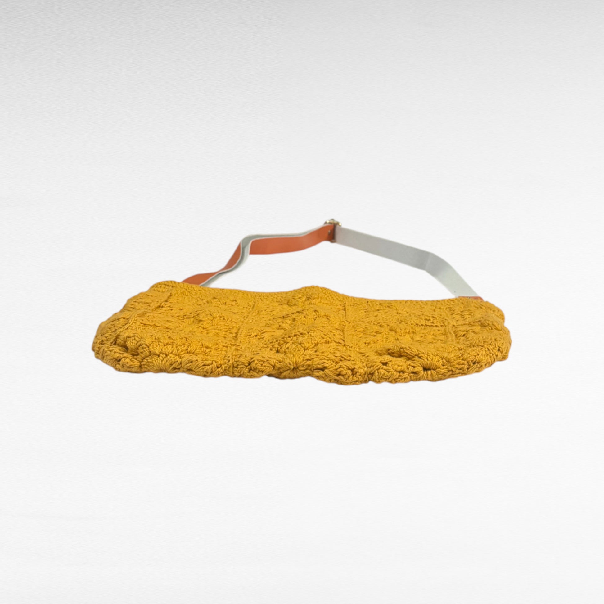 This shoulder bag is expertly handcrafted using cotton yarn through crochet techniques. Its lightweight construction makes it an ideal choice for everyday use.