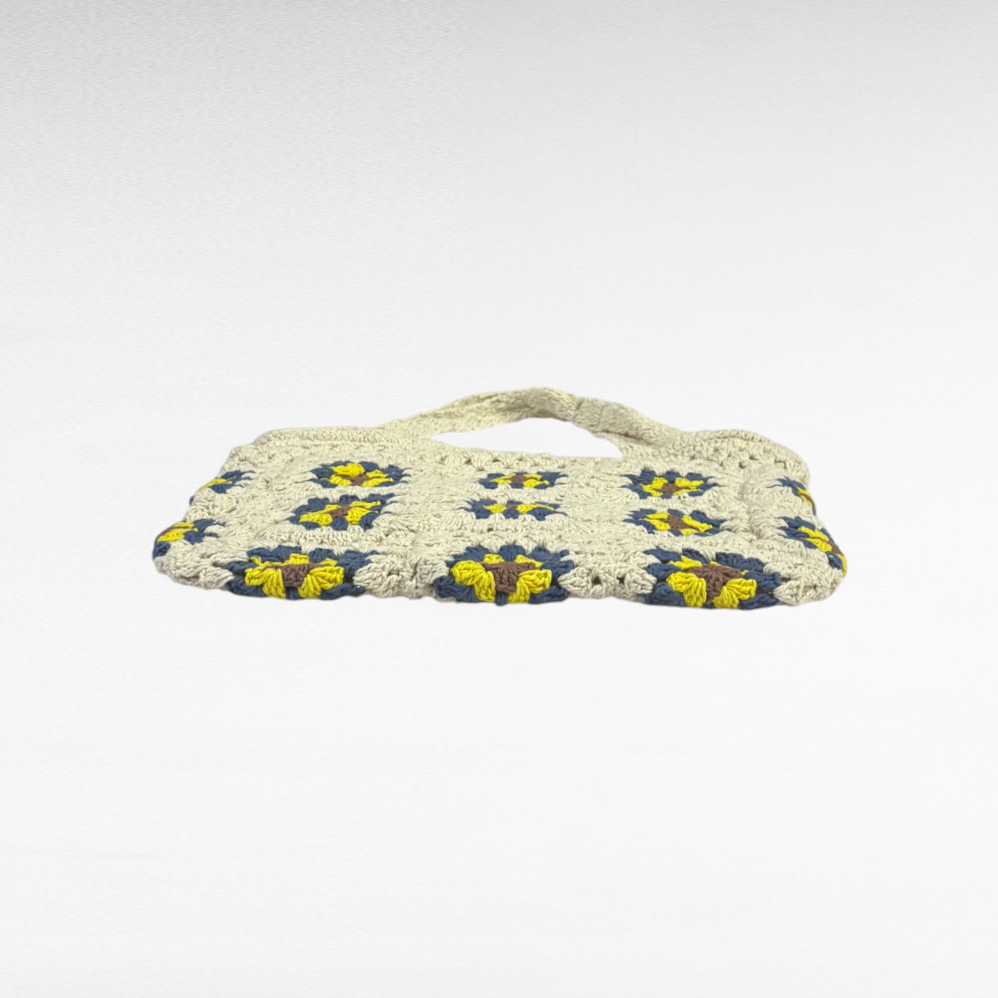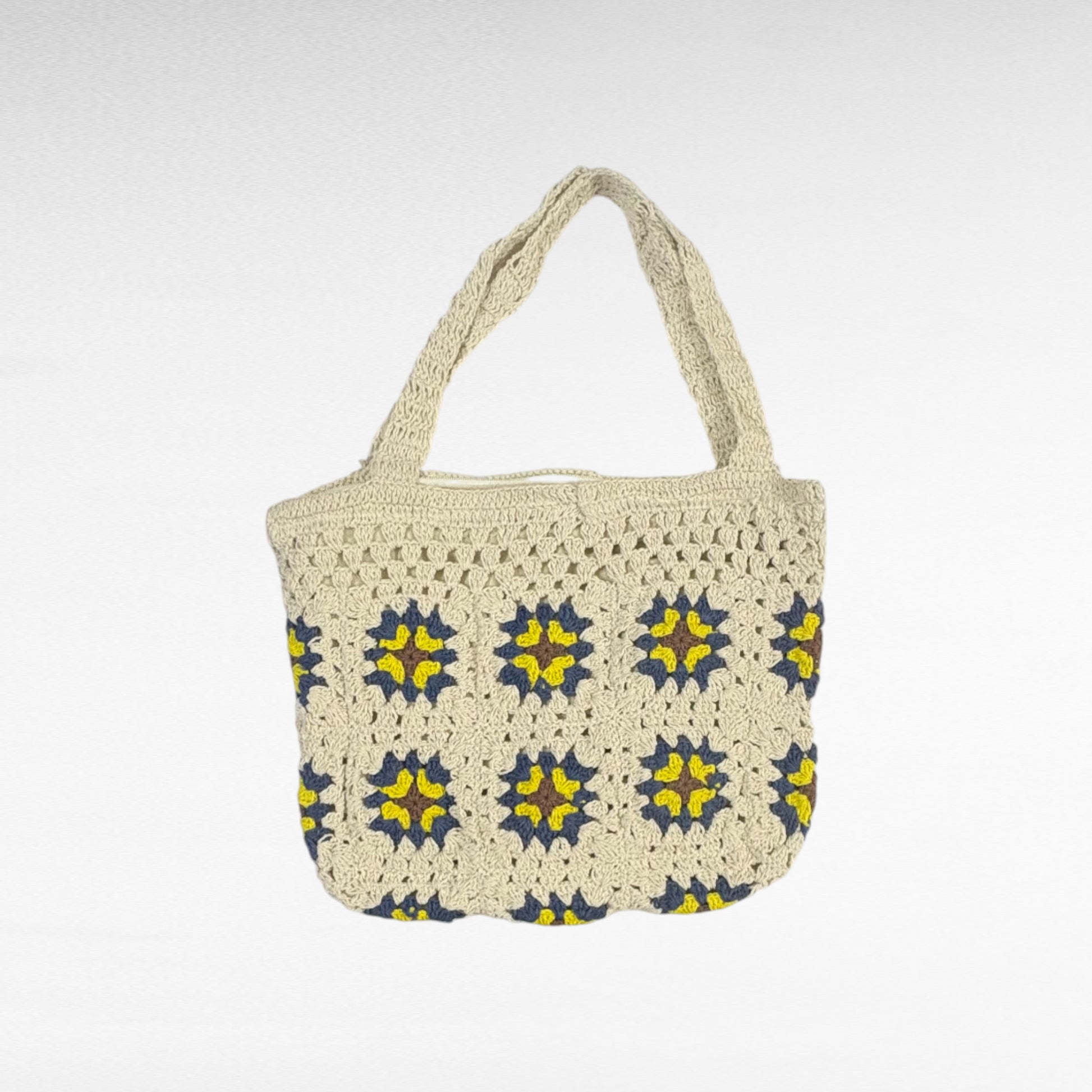 This shoulder bag is expertly handcrafted using cotton yarn through crochet techniques. Its lightweight construction makes it an ideal choice for everyday use.