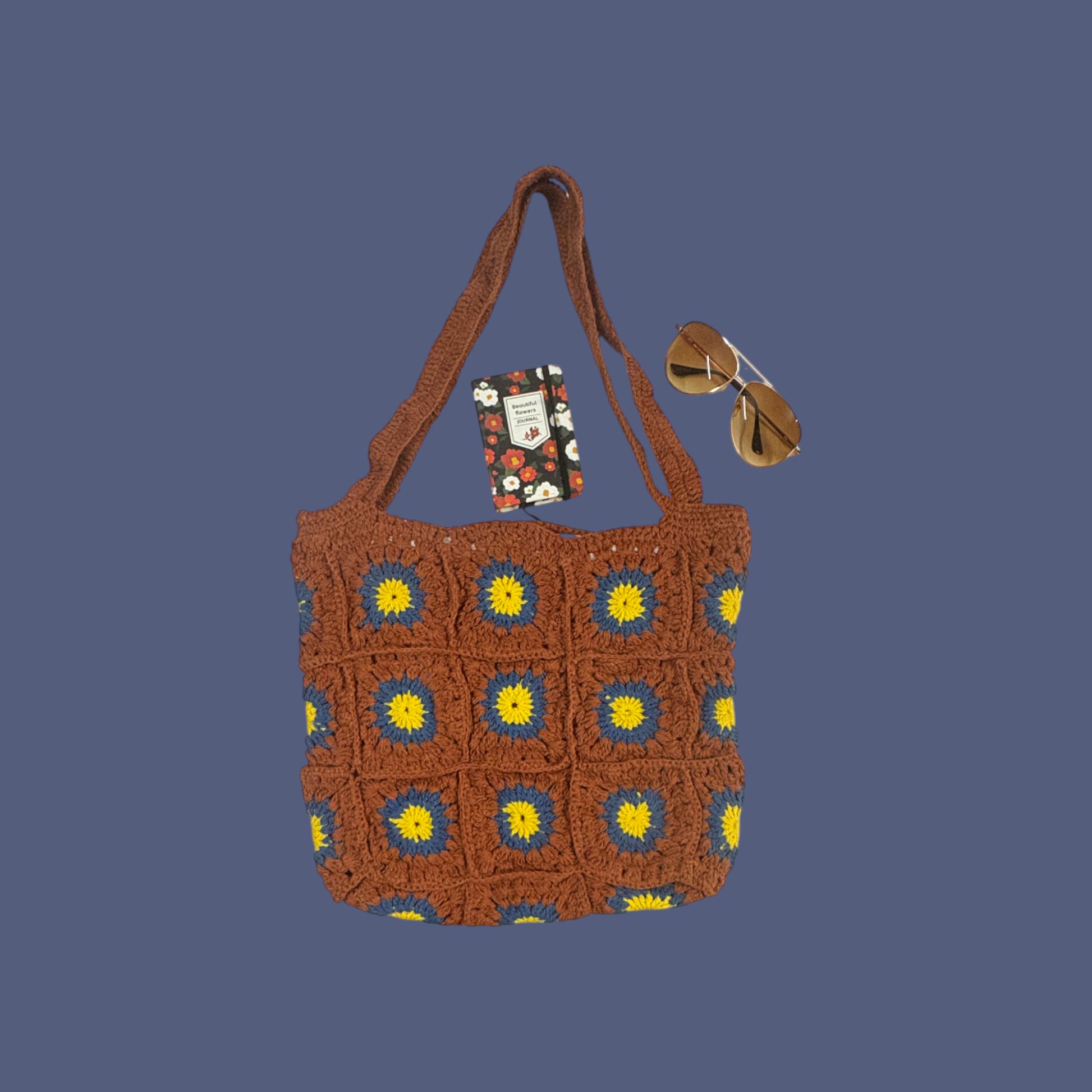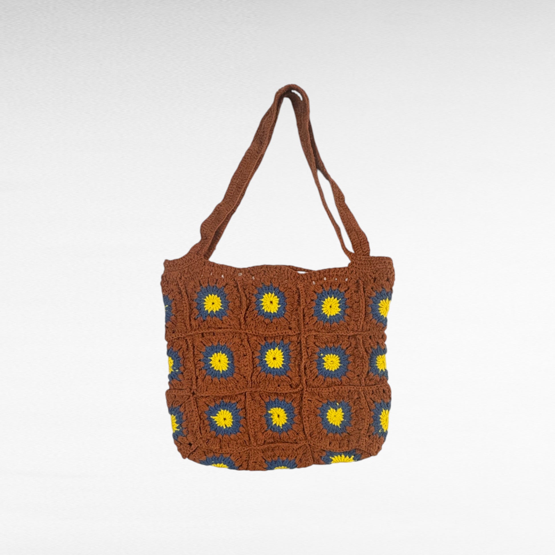 This shoulder bag is expertly handcrafted using cotton yarn through crochet techniques. Its lightweight construction makes it an ideal choice for everyday use.