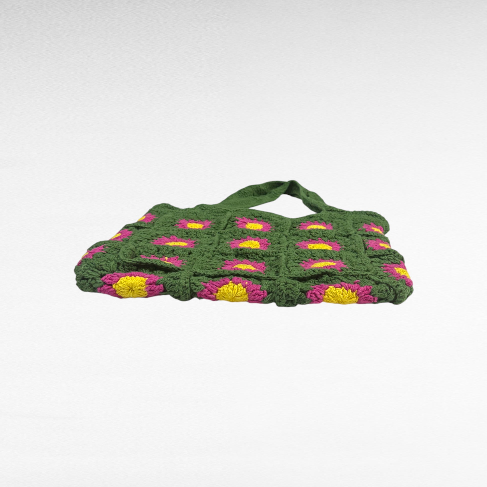 This shoulder bag is expertly handcrafted using cotton yarn through crochet techniques. Its lightweight construction makes it an ideal choice for everyday use.