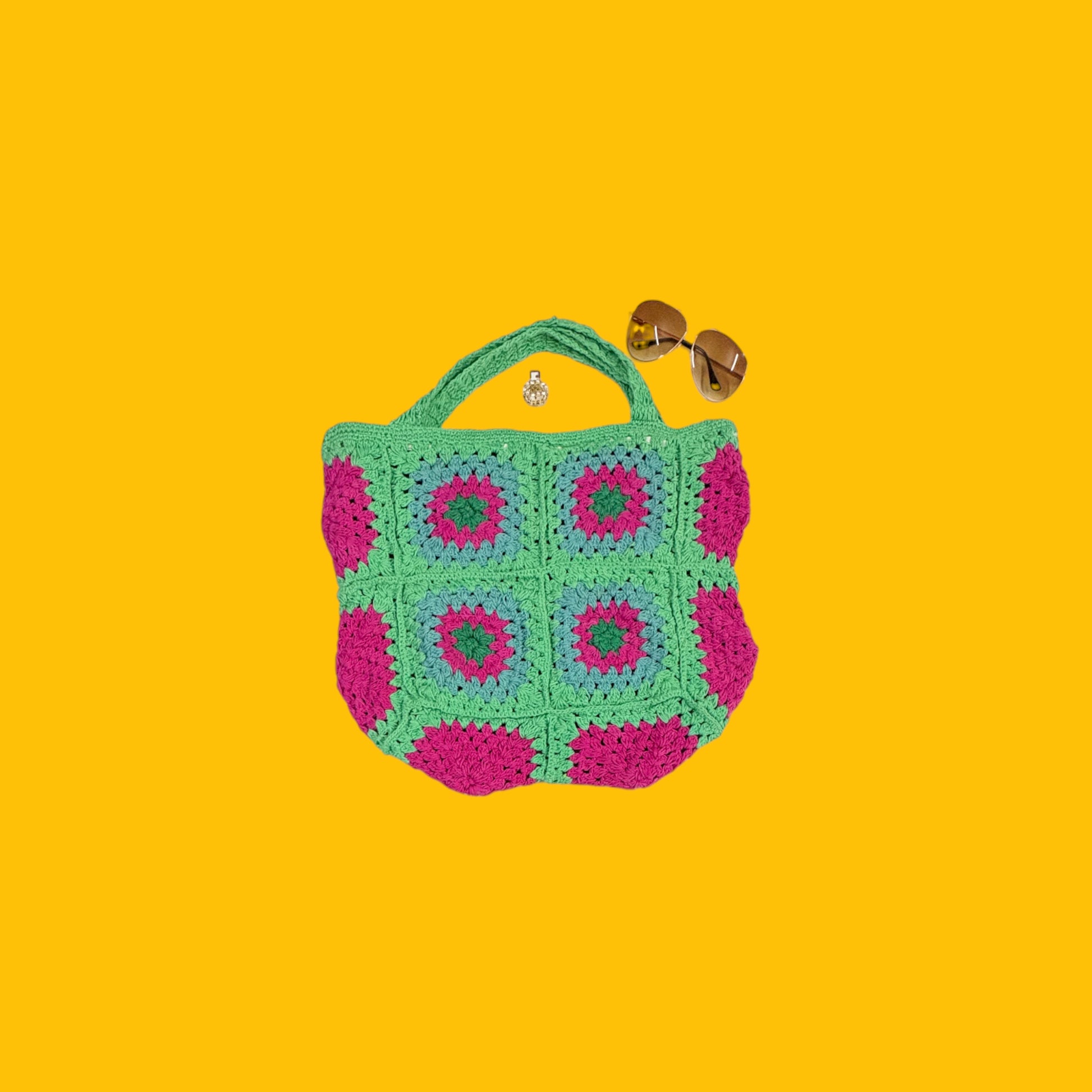 This handheld bag is expertly handcrafted using cotton yarn through crochet techniques. Its lightweight construction makes it an ideal choice for everyday use.