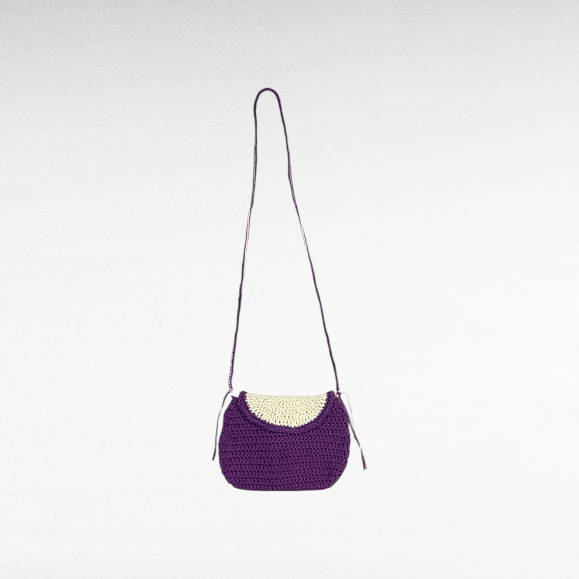 Classic yet contemporary, this violet and white sling captures the calm essence of handmade artistry. With a secure flap closure and soft strap, it’s ideal for carrying small essentials in style.