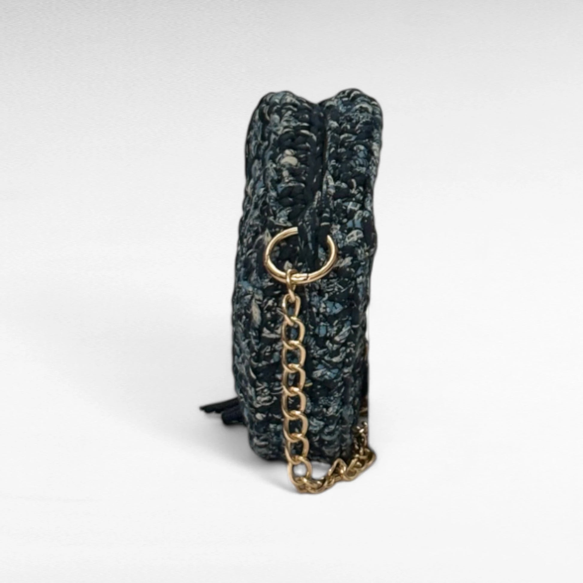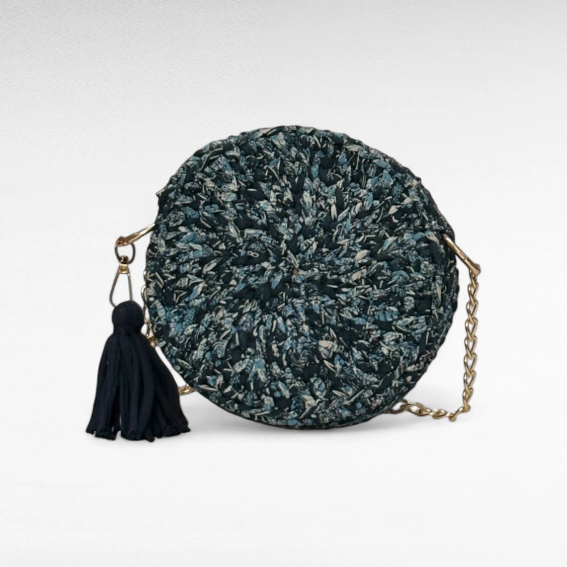 Our Textured Round Sling Bag combines everyday chic with artisanal craftsmanship. Made with cotton t-shirt yarn, this bag features a a playful tassel accent that gives it charm. Perfect for brunches, shopping, or casual evenings out.