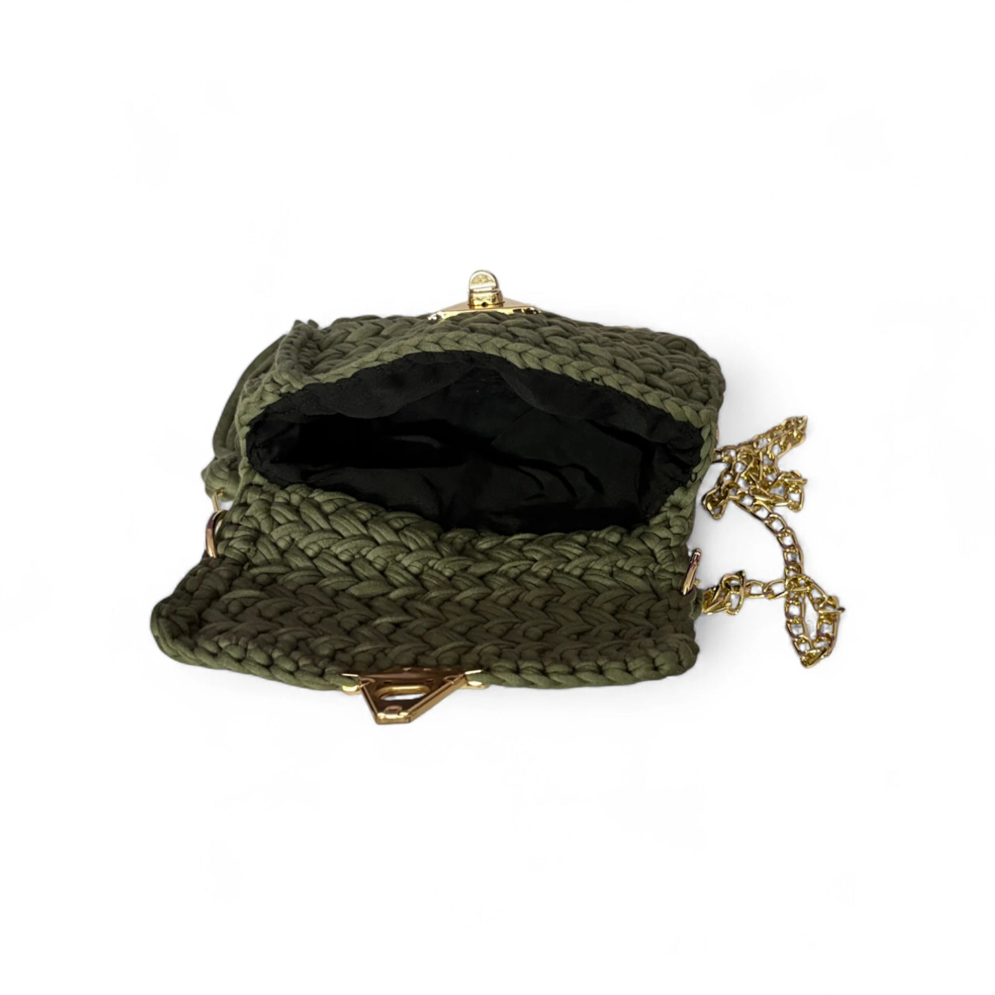 A handcrafted crochet bag made with 100% cotton t-shirt yarn that blends elegance with versatility.