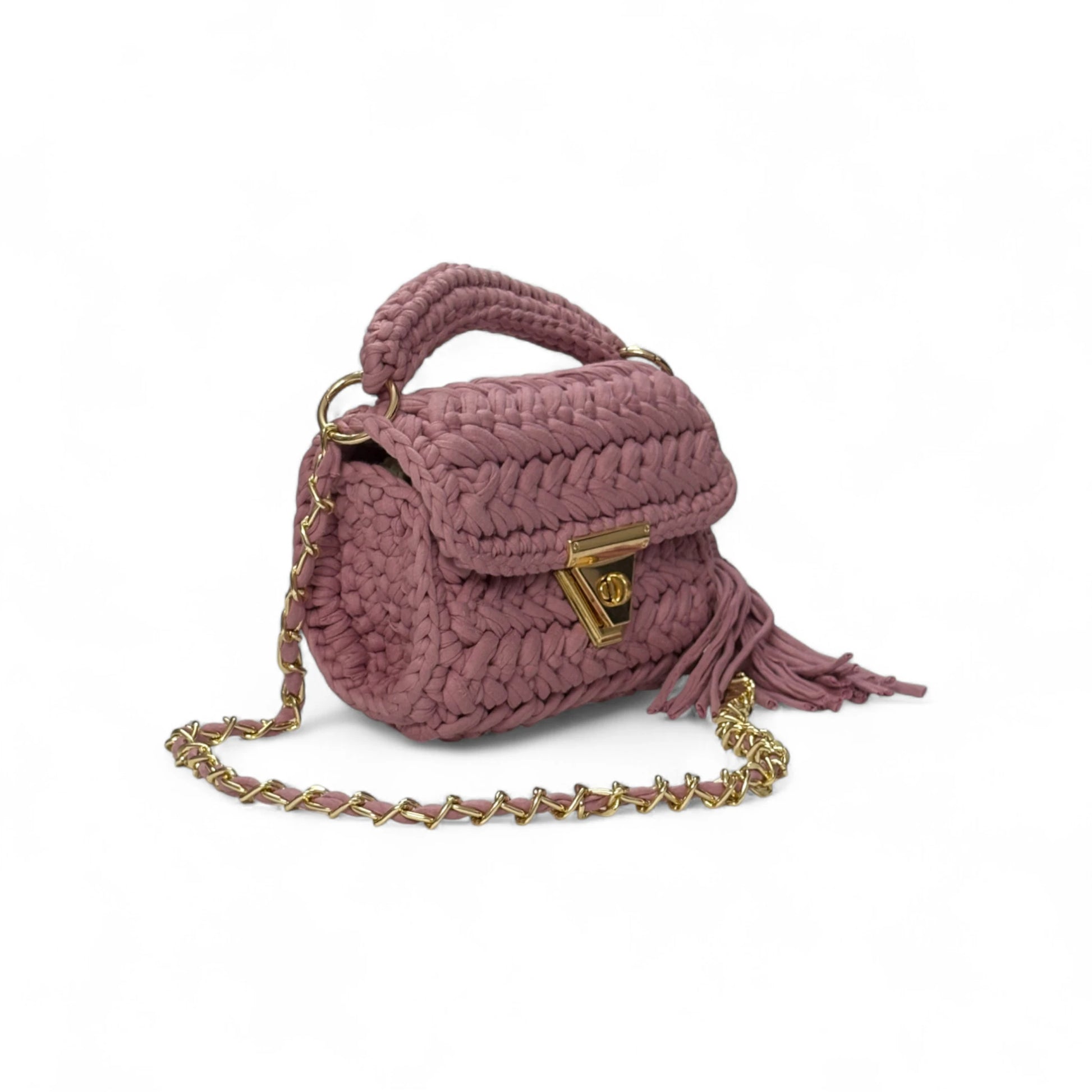 A handcrafted crochet bag made with 100% cotton t-shirt yarn that blends elegance with versatility.