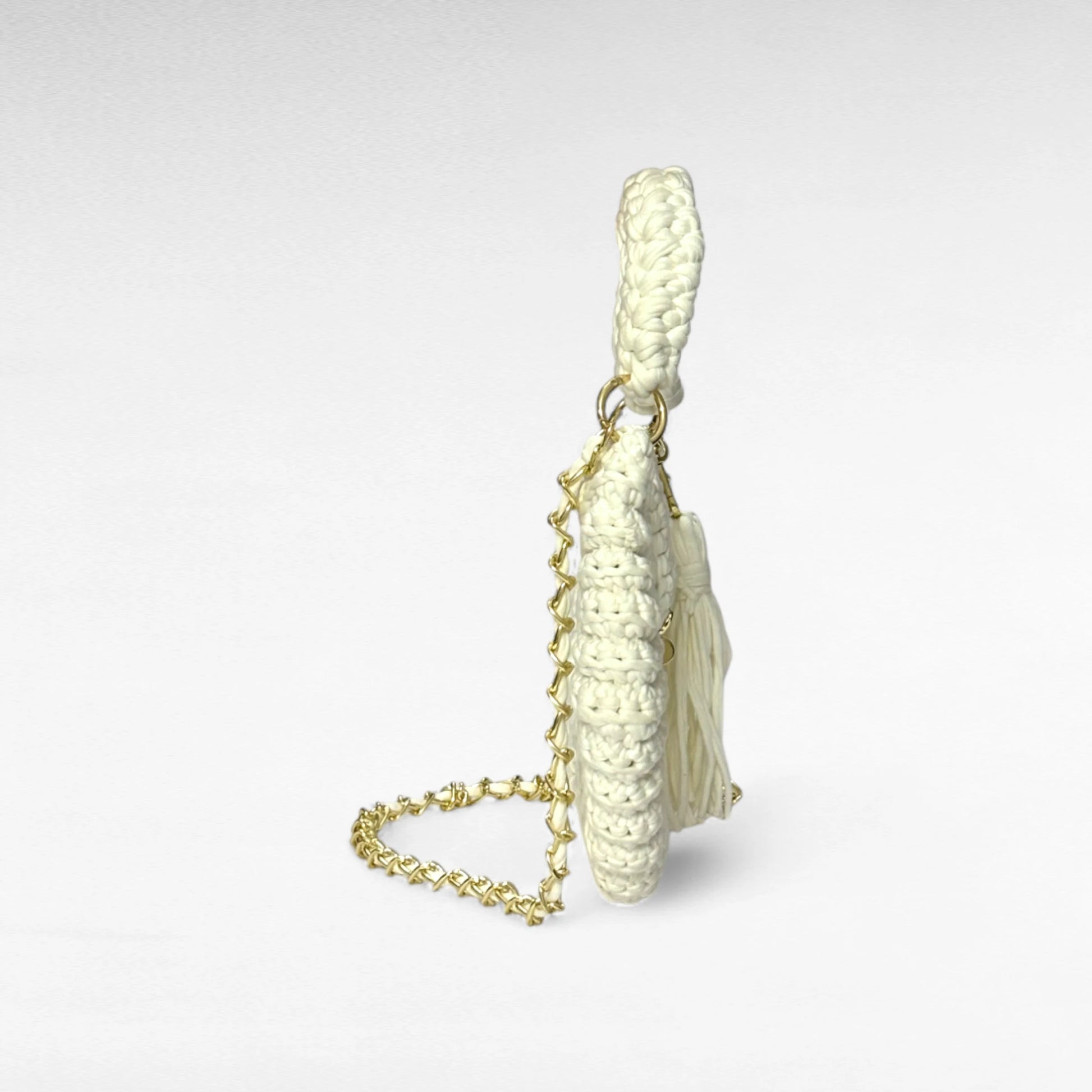 Featuring a sturdy top handle, a golden sling chain, and a statement tassel, it’s perfect for both day outings and evening occasions.
