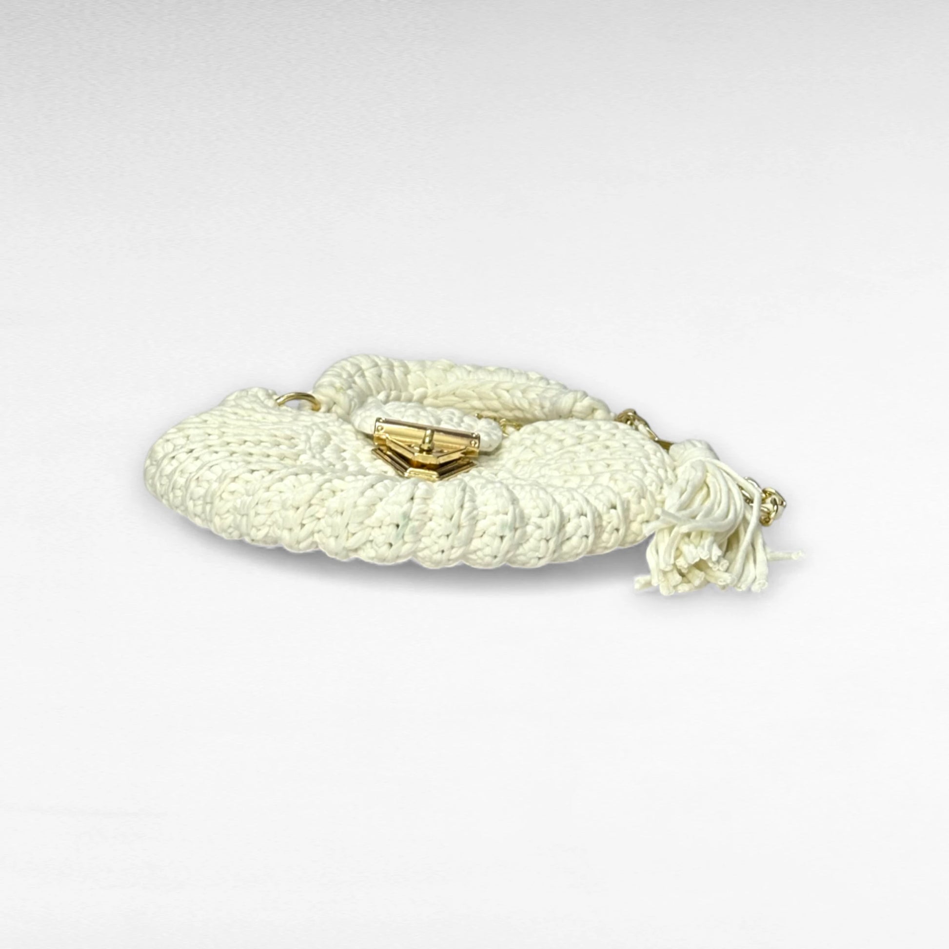 Handcrafted crochet sling bag with a unique Oreo-inspired design. Made with cotton t-shirt yarn, this bag combines style and craftsmanship.